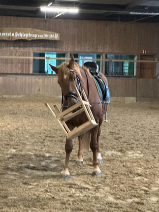 Unser neustes Schulpferd. Er muss noch einiges lernen, insbesondere auch, wenn der Reiter neben ihm ist. Ansonsten manchmal noch ein kleiner Witzbold, der auch mal den Reitern den Hocker klauen möchte.